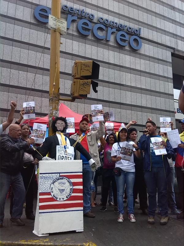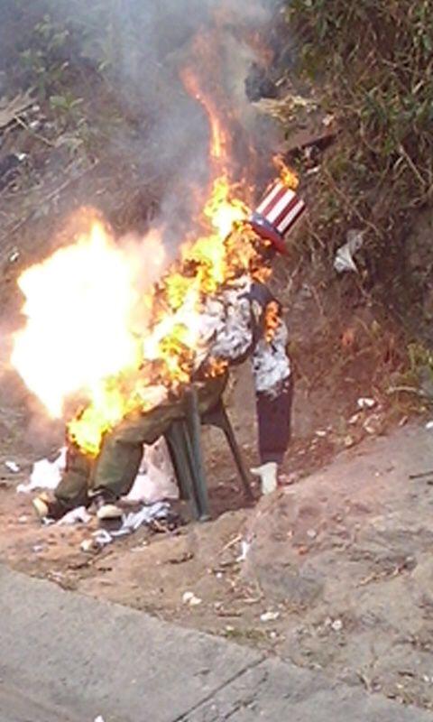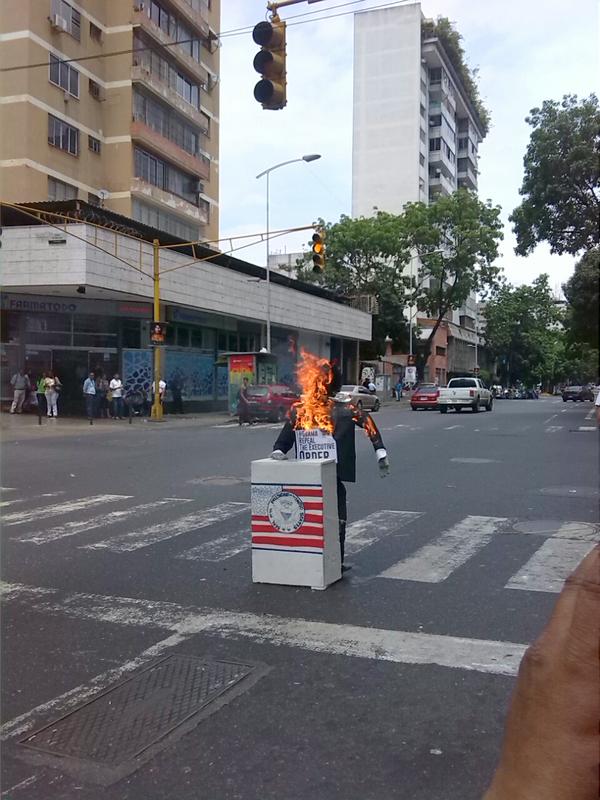 Igualmente, en San Martín, la plaza Capuchinos fue otro de los escenarios donde quemaron a Obama, pero esta vez estuvo la actividad acompañada por una muñeca bautizada como María Corina Machado, representante de sectores de la ultra derecha nacional que avalan el decreto imperial.