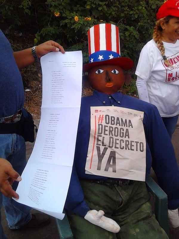 En declaraciones a VTV, Torres expresó que este año decidieron elegir a Obama para exigirle que derogue el decreto firmado recientemente que declara a Venezuela como una “amenaza”. “De manera simbólica le exigimos a este chupa sangre de los pueblos a que derogue el decreto”.