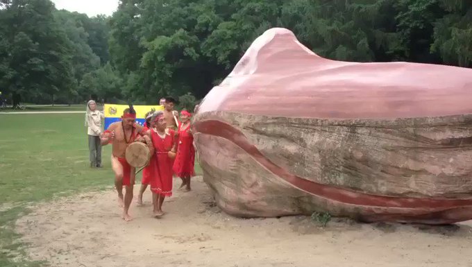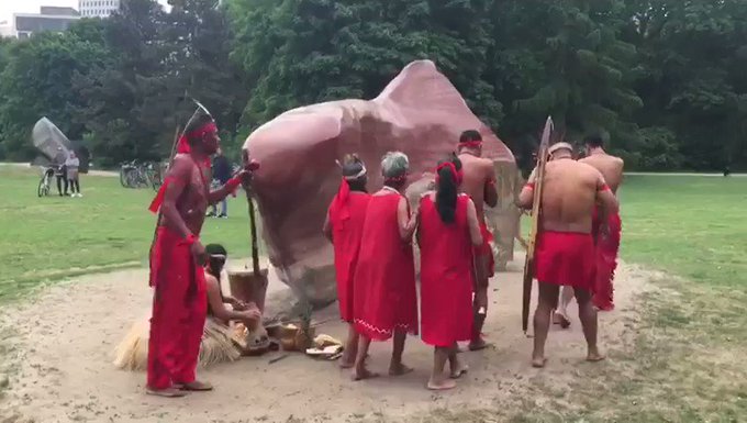 Una representación de indígenas Pemones realizó este viernes un ritual de sanación ante la piedra Kueka, actualmente ubicada en un parque en Berlín, Alemania, como antesala a la repatriación de este patrimonio cultural de Venezuela.
